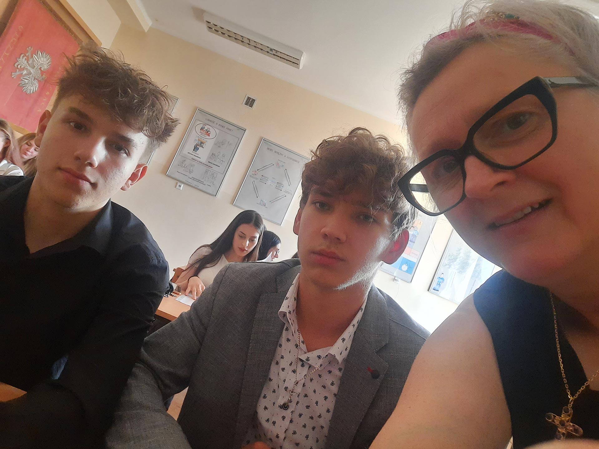 Niespodzianką była wizyta Dyrekcji Szkoły w naszej sali lekcyjnej. Pan Dyrektor Marek Józefowicz podziękował uczniom za trzy lata pracy w warsztatach szkolnych i zachęcał do dalszej nauki w szkole branżowej drugiego stopnia. Spotkanie przebiegło w sympatycznej atmosferze.