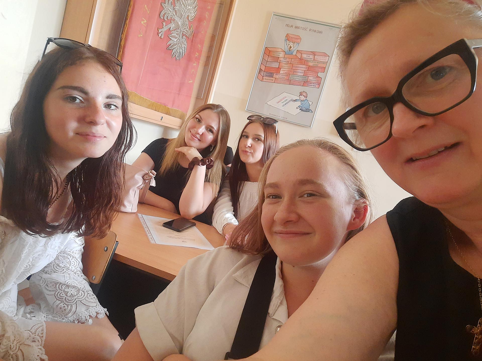 Po rozdaniu świadectw ukończenia szkoły i wręczeniu dyplomów z nagrodami zrobiliśmy sobie ostatnie zdjęcia na pamiątkę. Były uściski i dobre słowa.