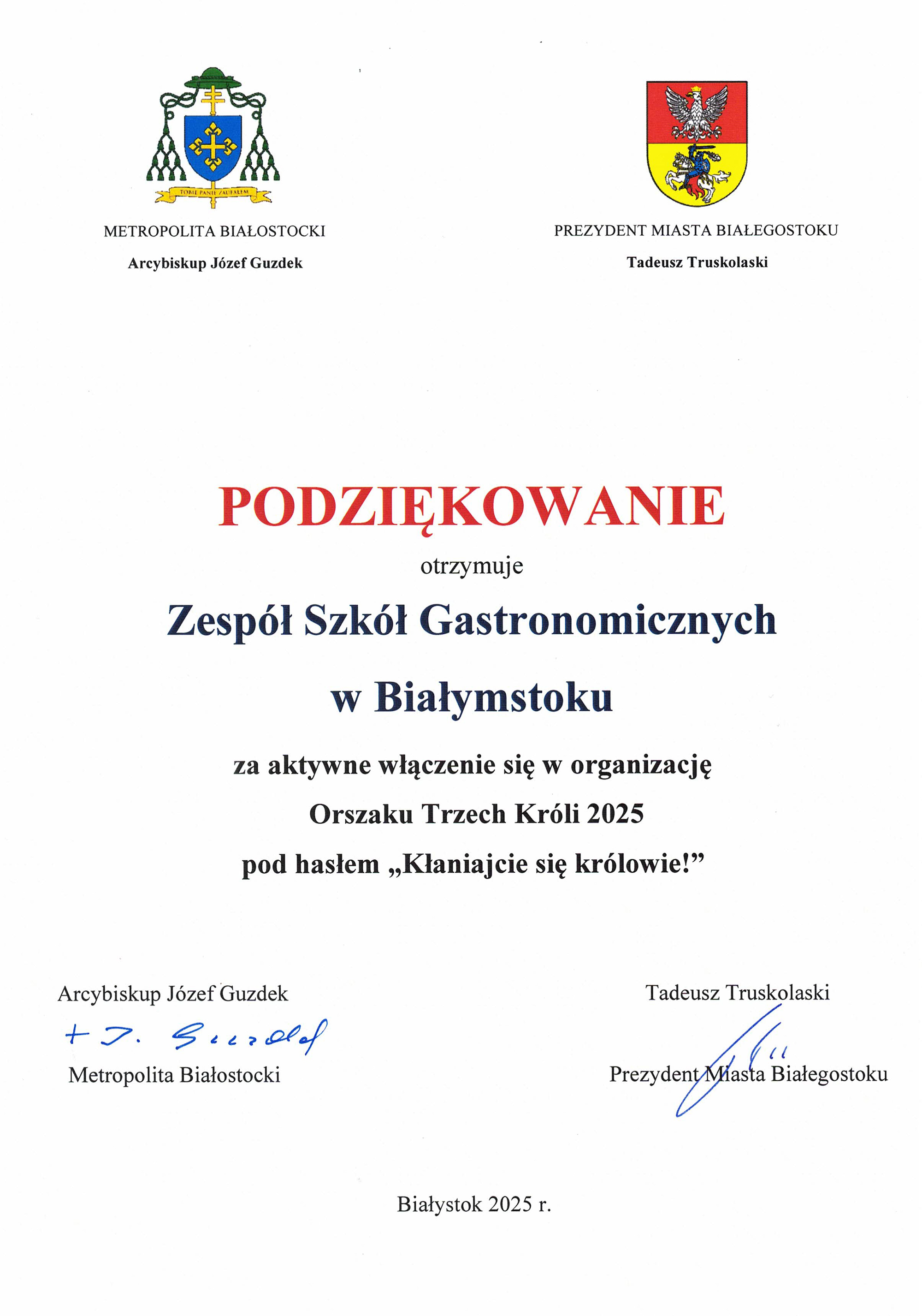 Podziękowania dla ZSG