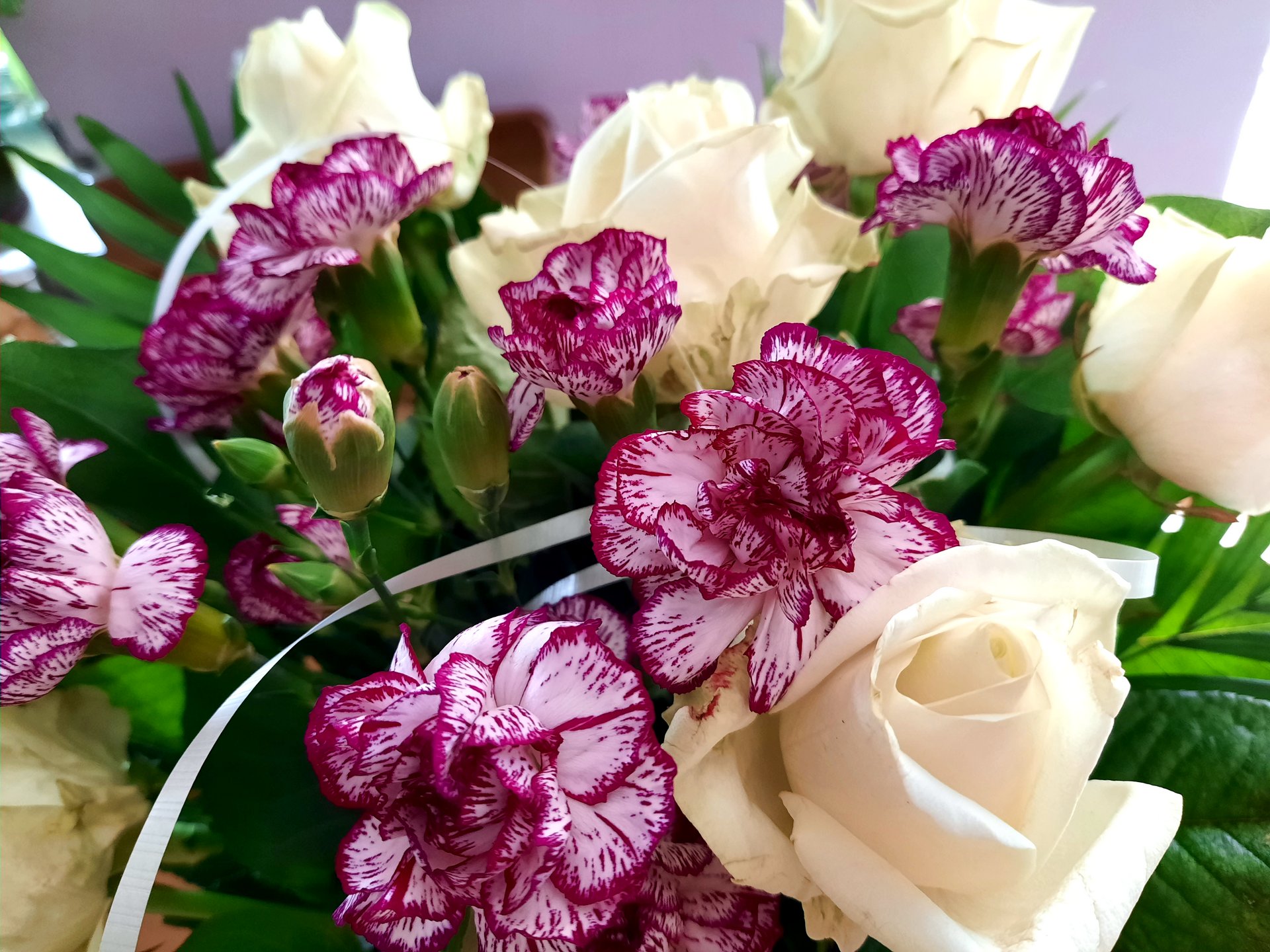 Aleks z pięknym bukietem kwiatów, jak przystało na gospodarza.