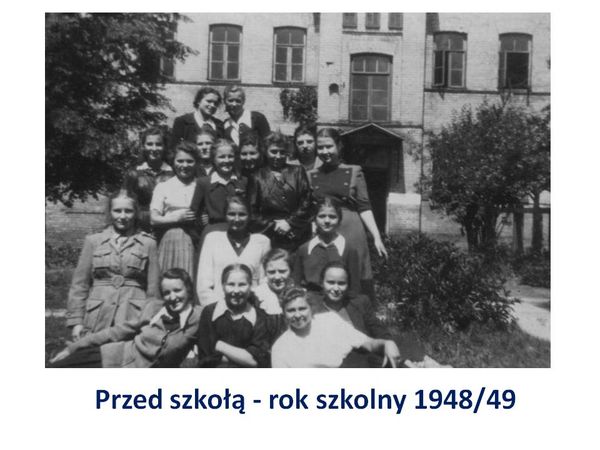 „ob. Malinowską i ob. wizytator Kolendo”. Z cytowanej kroniki dowiadujemy się, że w roku 1948 uczennice brały też udział w akademii z okazji Międzynarodowego Dnia Kobiet, przygotowały święcone na Wielkanoc, defilowały w dniu Święta Pracy 1 Maja, „demonstrując swą wolę solidarności międzynarodowej”, a na Dzień Zwycięstwa 9 Maja „brały udział w akademii urządzonej przez gimnazjum krawieckie”.