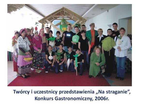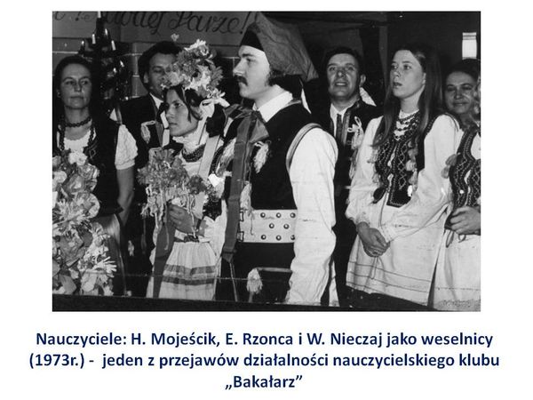 Pedagodzy Zespołu Szkół Gastronomicznych nie tylko zawsze dbali o wysoki poziom kształcenia i wychowania swoich podopiecznych, ale i sami potrafili się świetnie bawić. Jesienią 1973 roku w klubie nauczycielskim „Bakałarz” 150 widzów podziwiało bogatą pod względem muzycznym inscenizację obrzędu weselnego w wykonaniu przedstawicieli grona pedagogicznego z ZSG. Między innymi w roli panny młodej wystąpiła nauczycielka przedmiotów zawodowych Elżbieta Rzonca, fizyk Waldemar Nieczaj wcielił się w postać pana młodego, a rodzicami panny młodej byli wielce zasłużeni dla szkoły: Franciszka Bolina - nauczycielka historii oraz chemik - Piotr Mojsiejuk. Jako swatka królowała na scenie wybitna malarka Bronisława Mytnik, która wraz z Elżbietą Piotrowską i Edwardem Gojlikiem przygotowała i wyreżyserowała przedstawienie.