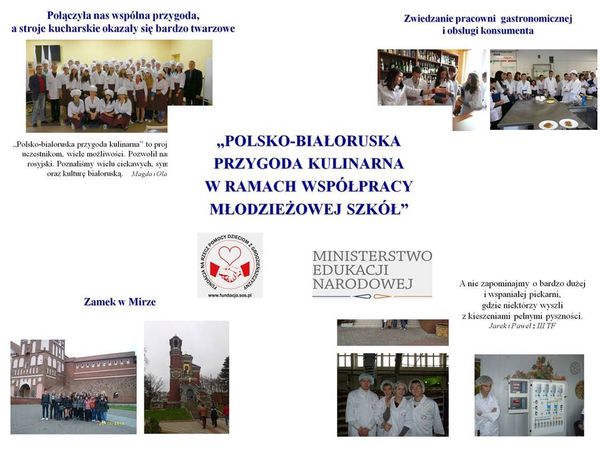 Zdobywaniu praktyki zawodowej służyła także wymiana międzynarodowa młodzieży, oraz udział w kilku projektach gastronomicznych, których początek sięga roku szkolnego 2006/ 2007. Miały one miejsce, m. in. w ramach: Polsko – Niemieckiej Współpracy Młodzieży(PNWM), Europejskiej Klasy Sztuk Kulinarnych, Polsko-Francuskiej Klasy Sztuk Kulinarnych, a w roku szkolnym 2013/2014 w „Polsko – białoruskiej przygodzie kulinarnej w ramach współpracy młodzieżowej szkół”.