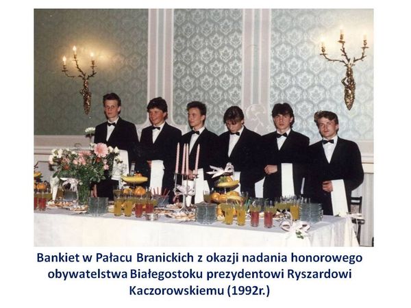 Dużym uznaniem cieszyły się w Białymstoku uroczyste bankiety przygotowywane przez młodzież naszej szkoły pod kierunkiem nauczycieli zawodu, głównie Wiesławy Szlęzak i Marii Bazylewicz-Radio. Umiejętności w tym zakresie uczniowie zdobywali i zdobywają nadal podczas planowych zajęć, a także wyjątkowo efektownych konkursów na najlepszego specjalistę w zawodzie kucharz i kelner. Od kilku lat ten konkurs nosił nazwę „Wojewódzki Turniej Gastronomiczny”, a od roku 2013/2014 po pewnych zmianach organizacyjnych, „Turniej Gastronomiczny o zasięgu wojewódzkim”. 14 maja 1991 roku nasi wychowankowie obsługiwali bankiet w reprezentacyjnej sali Pałacu Branickich z okazji nadania tytułu Honorowego Mieszkańca Białegostoku prezydentowi Polski na uchodźstwie - Ryszardowi Kaczorowskiemu.