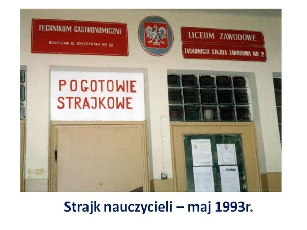 Dramatyczne wydarzenia towarzyszyły życiu szkoły w maju 1993 roku. Wraz z przeważającą liczbą placówek oświatowych szkoła gastronomiczna uczestniczyła w strajku protestacyjnym przeciwko pogarszającej się sytuacji materialnej polskiej oświaty. Egzaminy dojrzałości odbyły się w późniejszym, niż nakazuje tradycja, terminie.
