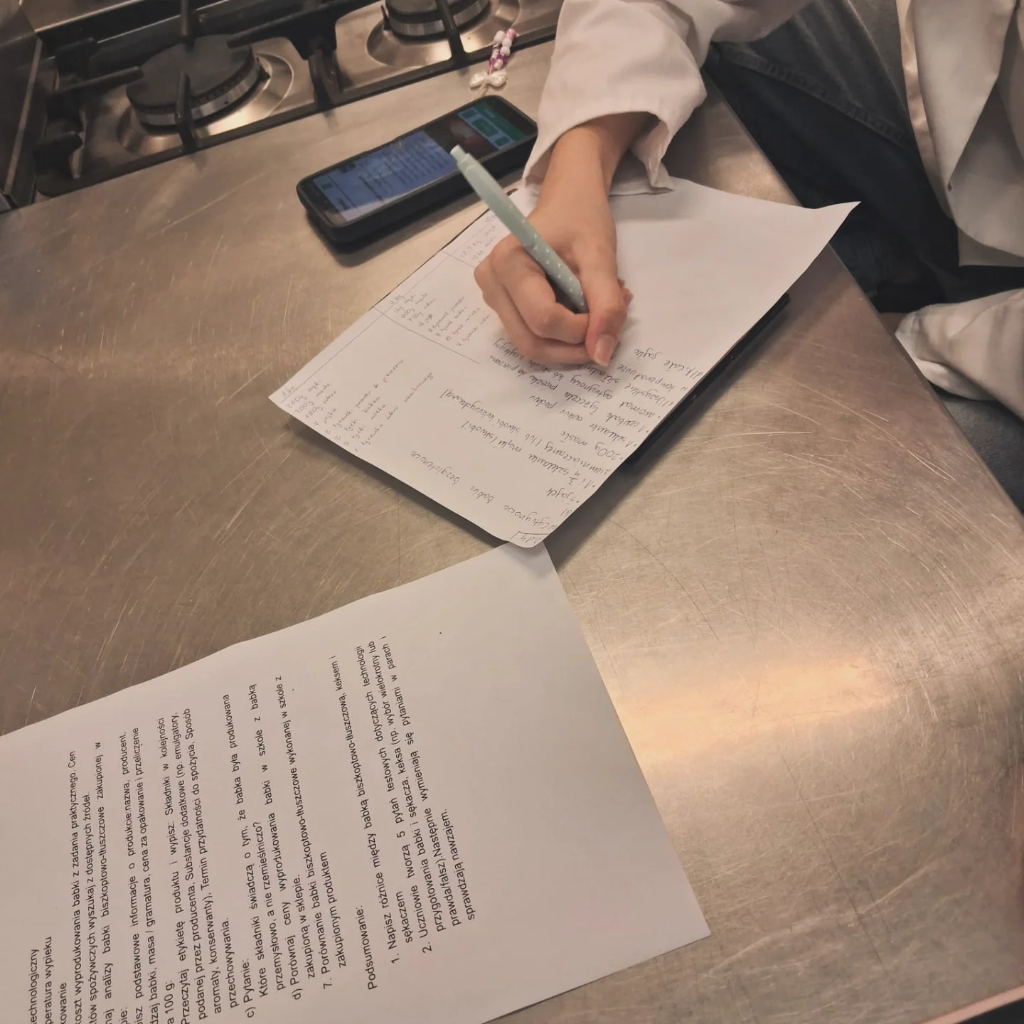 Kluczowym elementem projektu było wejście uczniów w role technologów żywności – przejęli oni odpowiedzialność za analizę, planowanie i zarządzanie procesem produkcji. Praca miała charakter wieloetapowy i obejmowała korzystanie z zasobów Zintegrowanej Platformy Edukacyjnej (ZPE), przygotowanie charakterystyki produktów przy wsparciu sztucznej inteligencji (ChatGPT), analizę procesów technologicznych i chemicznych wpływających na strukturę ciasta oraz opracowanie profesjonalnych etykiet i materiałów wideo dokumentujących przebieg działań.