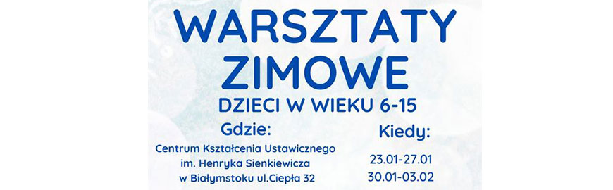 Zapraszamy dzieci i młodzież do udziału w warsztatach organizowanych podczas ferii zimowych w Centrum Kształcenia Ustawicznego im. Henryka Sienkiewicza w Białymstoku.