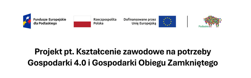 Projekt realizowany w ramach Zintegrowanych Inwestycji Terytorialnych Białostockiego Obszaru Funkcjonalnego z programu Fundusze Europejskie dla Podlaskiego 2021-2027 ze środków Europejskiego Funduszu Społeczny PLUS. Priorytet VIII Fundusze na rzecz edukacji i włączenia społecznego, Działanie 8.2 Zintegrowany terytorialnie rozwój edukacji i kształcenia.